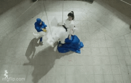 Động tác này cần kiểm soát tốc độ trọng tâm của cơ thể rơi xuống, giữ ngực và vai, đồng thời sử dụng hai chân tách ra để xoay theo các hướng khác nhau. Phối hợp với lực của vai và cánh tay để tạo ra lực quay ngang và di chuyển trọng tâm cơ thể một cách hợp lý.